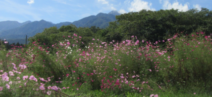 6月以来の山梨県北斗市白州です。初夏の時は白州は至る所に夏の花が咲いていましたが、此度の白州は路傍のコスモスが主役となり道行く人を楽しませてくれていました。山の団十郎、甲斐駒ヶ岳も昼下がりの秋の日を浴びて眠たそうでした。