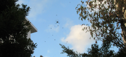 家のアプローチの上に先月から大きな蜘蛛が巣を掛けています。ヤマモモの木とヤマボウシの木の間にです。その下を通る時は何時も上を眺めながらどんな虫が掛かっているか確かめながら通り抜けています。しかし、虫の姿は見えません。どうやら蜘蛛は巣に掛かった虫を素早く平らげていたようです。先日、何時ものように蜘蛛を見ていたらその向こうに秋の雲が浮かんでいました。蜘蛛と雲同じkumoの音ですが言い分けるのも聞き分けるのも難しい言葉です。英語の花と小麦粉、fower・flourの区別がつきかねています。
