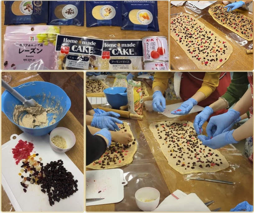 今年最後の家庭料理クラブは12月13日に開催しました。今回はフィンランドのクリスマスの風味豊かなクリスマス・リース”Joulukranssi”とピパルカックを作りました。