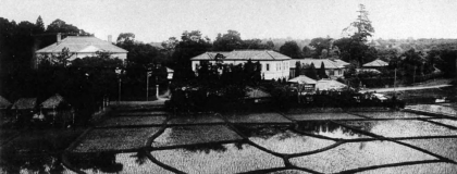 写真に写っているのは明治23年(1890年)頃の新宿区戸塚町です、現在はこの戸塚町はありませんが今の早稲田中学校のあたりです。ですからこの景色はまさにスオミ教会のある鶴巻町のごく近くです、明治時代はこんな田圃のある所だったのですね。夏目漱石の住んでいたのは早稲田通りの南側の喜久井町でした。正岡子規と一緒に散歩したのが関口町付近ですからこれも教会のすぐ近くです。正岡子規の「墨汁一滴」と言う随筆があり、その中に「稲」と「米」について漱石が東京生まれで田んぼのそばに住んでいたにもかかわらず、稲が実り米になると言う事を知らずにいたことを記したのがありますのでその一節を「・・・余が漱石と共に高等中学に居た頃漱石の内をおとづれた。漱石の内は牛込の喜久井町で田圃からは一丁か二丁しかへだたつてゐない処である。漱石は子供の時からそこに成長したのだ。余は漱石と二人田圃を散歩して早稲田から関口の方へ往たが大方六月頃の事であつたらう、そこらの水田に植ゑられたばかりの苗がそよいで居るのは誠に善い心持であつた。この時余が驚いた事は、漱石は、我々が平生喰ふ所の米はこの苗の実である事を知らなかつたといふ事である。都人士の菽麦を弁ぜざる事は往々この類である。もし都の人が一匹の人間にならうといふのはどうしても一度は鄙住居いをせねばならぬ。・・・」とユーモラスに記しています。