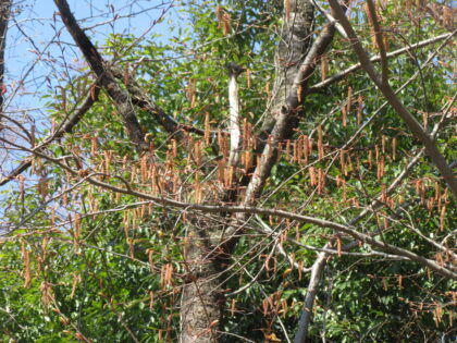 春は花の季節ばかりではありませんね、新緑の季節でもあります。何時もの散歩道の尾根緑道にも新緑の季節がやって来ました。フレッシュグリーンの中に一際目立つ木の芽を見つけました、調べてみたら「榛の木・ハンノキ」の新芽でした。榛の木は雑木の代表のような木ですがカバノキ科で白樺とは親類の関係ですね。炭焼きが盛んだった頃は榛の木は良質の炭が焼ける事から持て囃されてきましたが今ではすっかりすたれてしまっています。夏を過ぎた頃になると小さな松毬のような実が垂れ下がっているのをよく見かけます。此処、多摩丘陵は炭焼きで生計を立てた農家が多く多摩ニュータウンが出来る前までは至る所で炭焼きが盛んに行われてきました。雑木林に榛の木が多いのはその名残かも知れません。