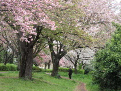 先日、小雨降る尾根緑道の桜見物に出かけました。尾根緑道の東側のソメイヨシノは既に葉桜となっていましたが、こちらの西側は山桜と八重桜は今が盛りと言わんばかりに咲き誇っていました。「シロタエ」や「ヨウキヒ」などの八重桜に混じって山桜の「駿河台匂い」も芳しい香りをあたりに漂わせていました。今年の桜の季節もそろそろ終盤に差し掛かってきたようです。この桜の饗宴をいつまで見られるか気になっているところです。