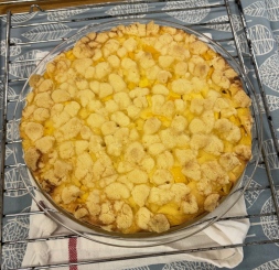 春たけなわの季節になりました。4月の家庭料理クラブでは「シュガーフレーク・フルーツケーキ」を作ります。フィンランドではこの季節になると、ピーチやパイナップルなどのフルーツをケーキに入れて作ることが多いです。それで、今回のケーキの中身もピーチとパイナップルですが、その上にレモンで味つけた水切りヨーグルトを重ねます。トッピングのシュガーフレークはケーキの風味を高めます。しっとり柔らかいケーキとサクサクとした表面のバランスが絶妙です。